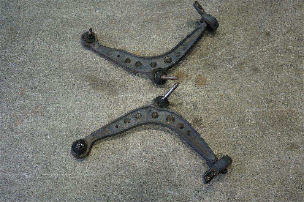 洗浄を終えたアッパーコントロールアーム・ロアコントロールアーム・トレーリングアーム一式。