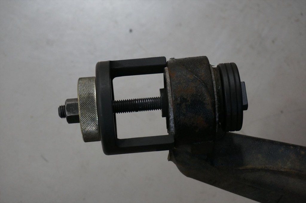取り外した逆の手順でブッシュを圧入し、ロアコントロールアームブッシュの交換が完了。