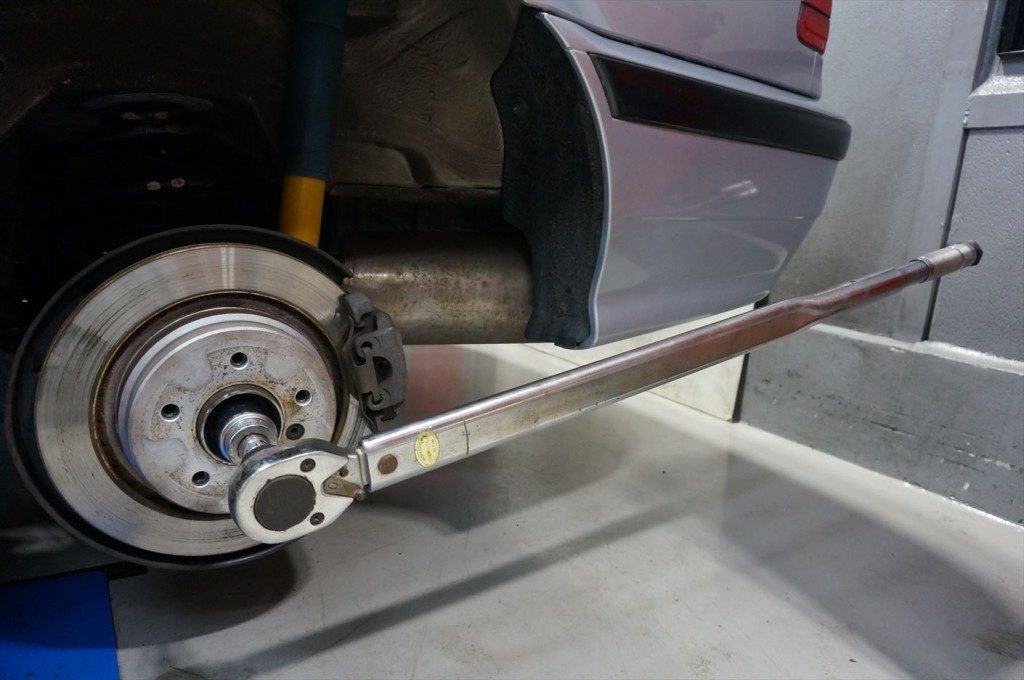 トルクレンチを使用し、規定のトルクでハブナットを装着。