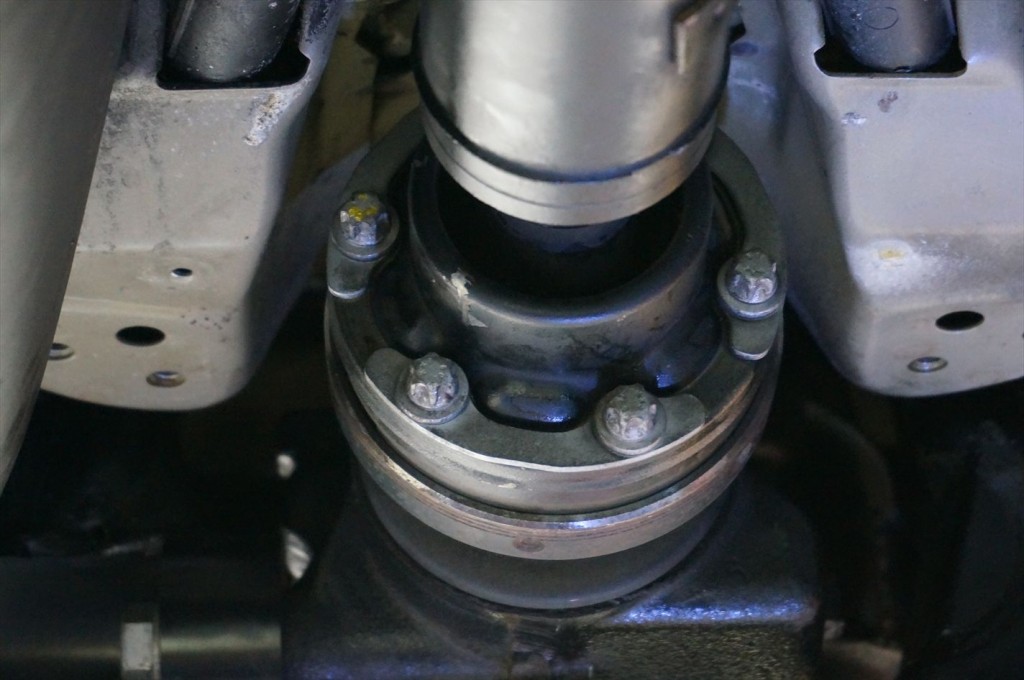 マフラー、プロペラシャフトを取り外しシャフトシールを抜いていきます。