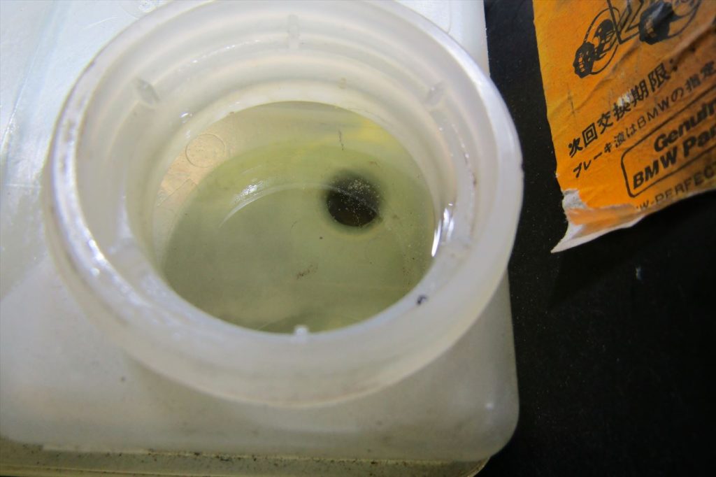 交換後のブレーキフルードは無色透明になるのですが、ブレーキラインに汚れが残っていると直ぐに汚れてしまう為、