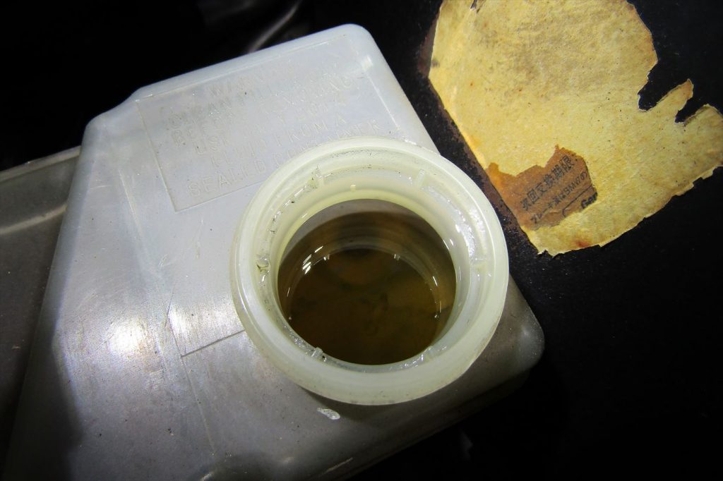 上手くスラッジを排出する事が出来ません。しずくが垂れなくなるまで排出を終えたら、規定量のデフオイルを注入してデフオイルの交換が完了。ブレーキフルード交換。