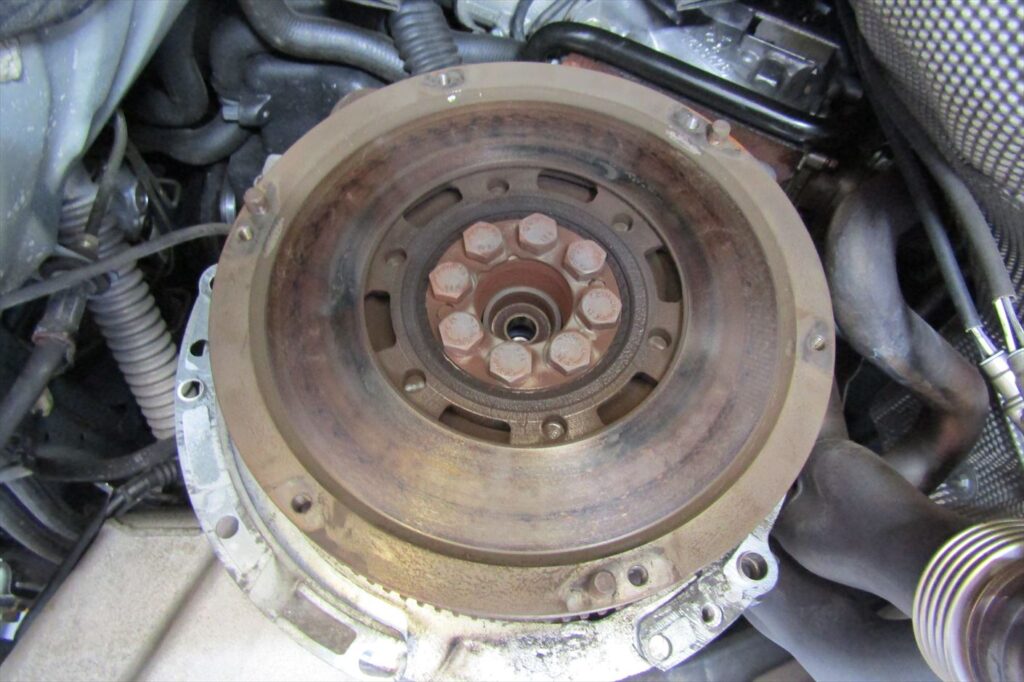 フライホイールの摩耗状態や歪み等の確認を行い、問題が無ければ研磨して綺麗に整えておきます。
