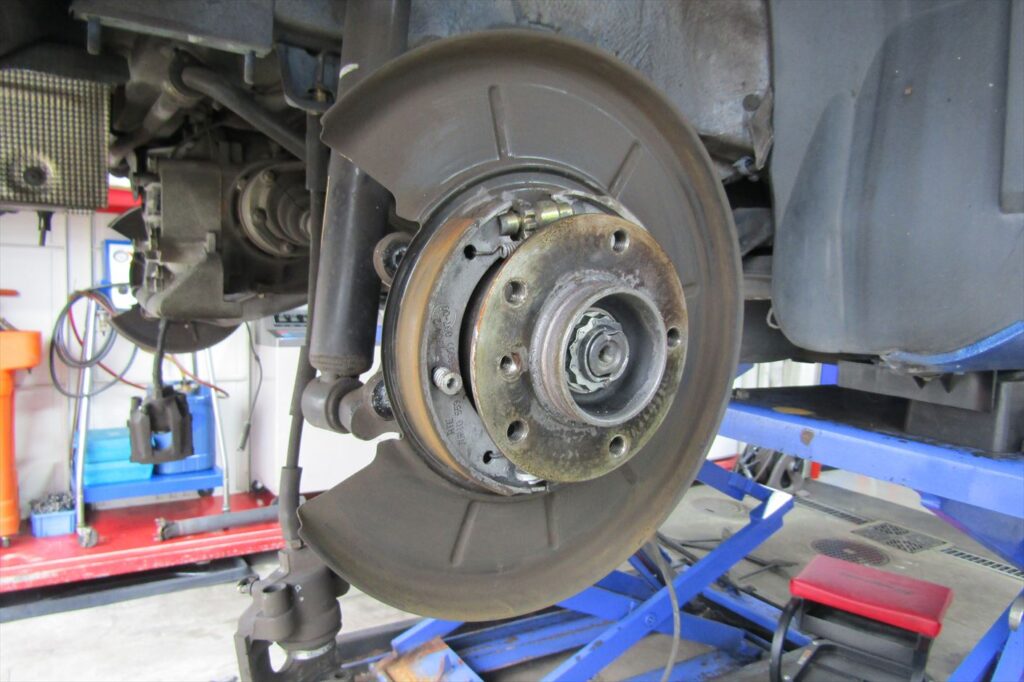 同時にブレーキローターとブレーキパッドの摺り合わせや焼き付け作業を行います。