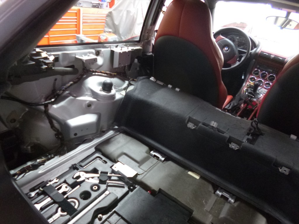 リアセクションは内装パーツを取り外し、ショックアブソーバーを脱着します。