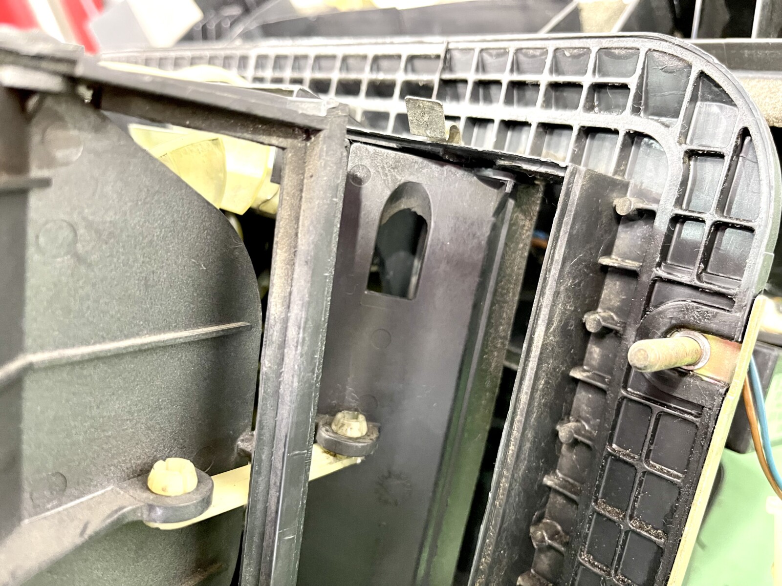 内外気切替 https://www.autofine.com/wordpress/wp-content/uploads/2024/05/IMG_4245.mp4 1990y BMW 320i 内外気切替不可 切替フラップロッド部分の破損 フラップは部品番号打刻ありますが入手不可の為修理です フラップ動作に必要なステッピングモーターは 常に内外気側どちらかにトルクがかかってしまう構造なので 破損していた部分への力のかかり方も強く、また同じように破損へつながる可能性も高いので モーター側にストッパーステーを取り付けて過度なトルクがかからないように制御 配線図を片手に最終チェック中です。 2024年05月18日