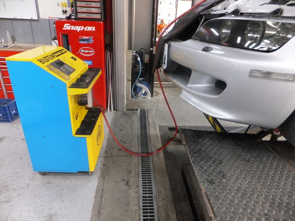 まずはMクーペ。走行距離は74,000Km1865126efefa37d4パワステオイルの交換。