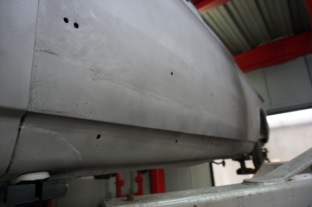 ドアパネルは補修跡が残っており、横から透かして見ると随分歪んでいるのが確認出来ます。